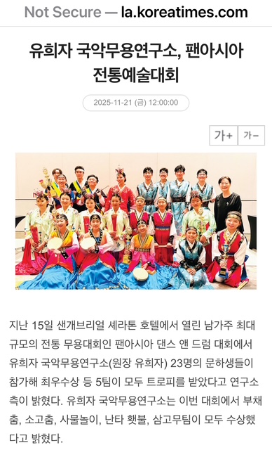 Since I was 4 years old in Korea, studied Korean traditional dances with Mrs. Baeck Bong Kim and Mrs. Soon Sung Kim who are nationally renowned Korean dance instructors and with intangible human cultural assets such as Mrs. Sun Young Kang and Mr. Mae Bang Lee. To preserve the Korean heritage by teaching traditional Korean music and dance.